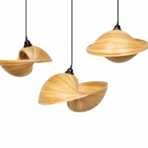 Suspension conique tressée en feuille de bananier – TROMPETE WHITE