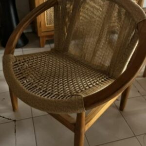 Fauteuil design rond en teck et fibres naturelles – ROLINA