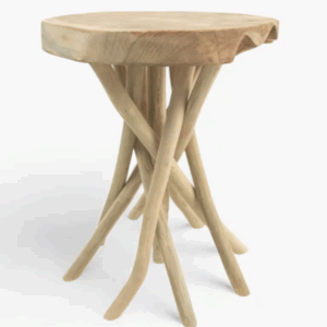 Tabouret d’appoint, pieds en branches de teck et assise en teck massif – PIETA