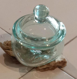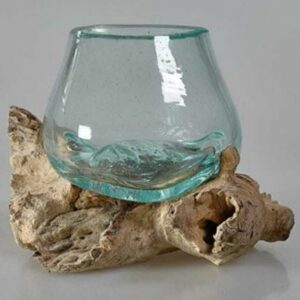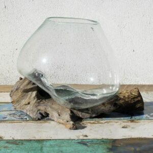 Vase en verre soufflé posé sur une racine de Teck – LULIA