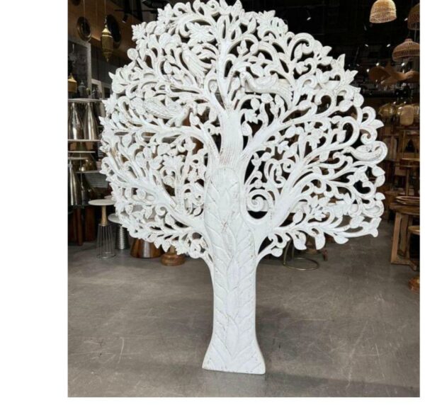 Symbole d’enracinement et de connexion, cet Arbre de Vie a été sculpté à la main avec une finesse incroyable. Chaque feuille et chaque oiseau sont finement ciselés, créant un motif ajouré d’une grande délicatesse. Sa finition blanche patinée accentue la richesse des détails et lui confère une aura à la fois intemporelle et lumineuse.