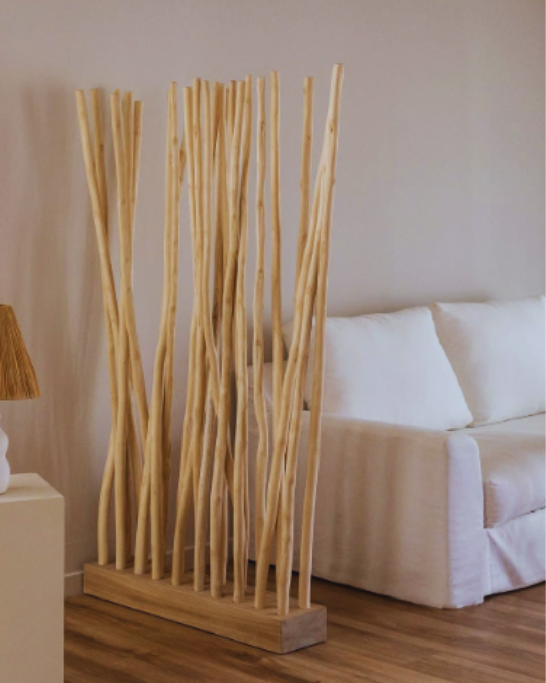Notre brise vue en branches de Teck vous permettra de créer une séparation naturelle tout en conservant la luminosité de votre pièce mais aussi de structurer votre intérieur.