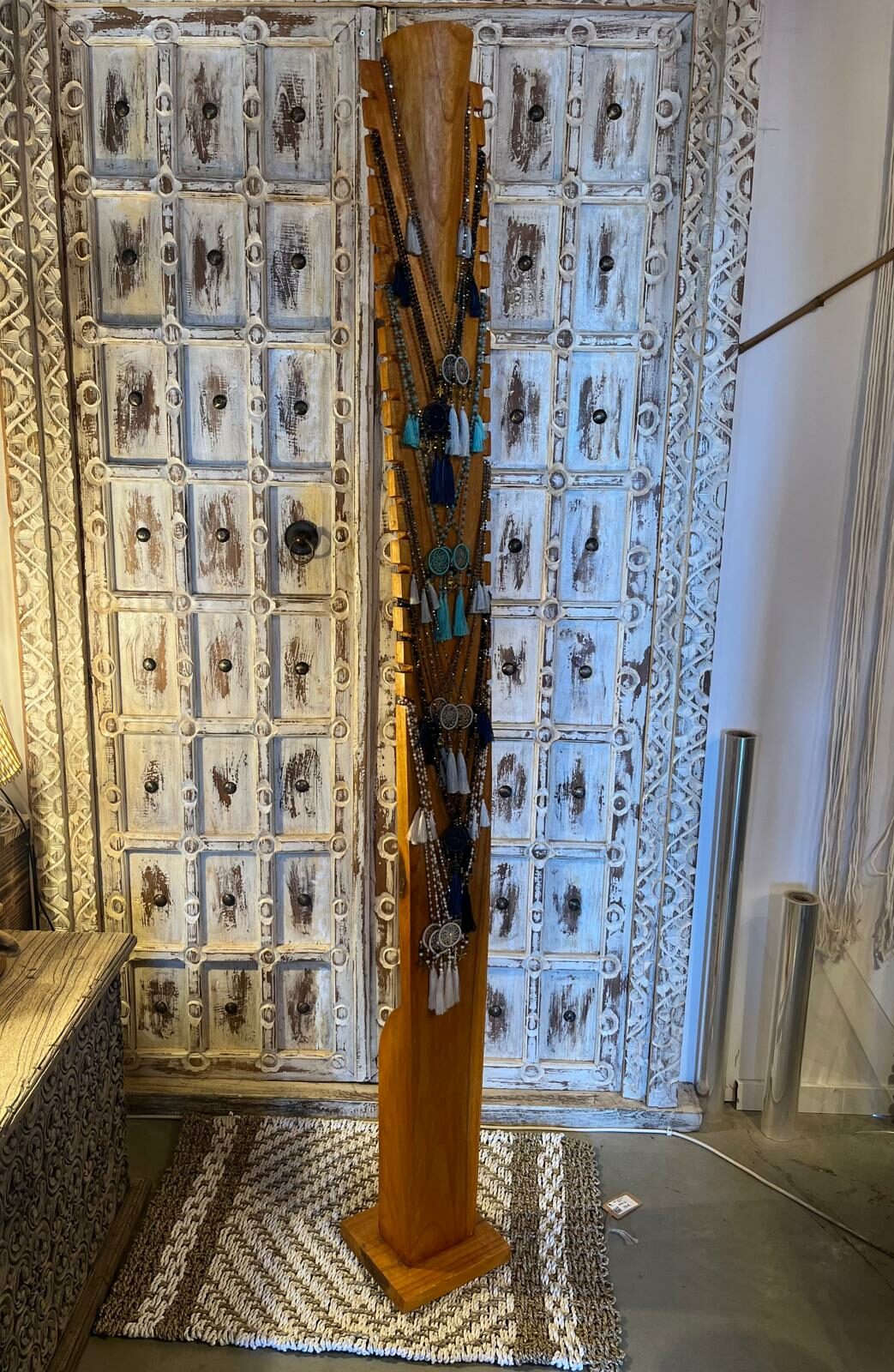 Sublimez votre collection avec ce buste porte bijoux monumental sculpté dans du bois d’albizia massif. Sa silhouette élancée et ses encoches précises permettent d’exposer de nombreux colliers et sautoirs avec une élégance rare. Cette pièce de décoration imposante incarne tout le raffinement de l’artisanat traditionnel de Bali. Sa finition naturelle et lisse apporte une touche chaleureuse et luxueuse à votre boutique ou votre intérieur. Offrez un écrin de haute qualité à vos plus belles parures grâce à ce support au design organique.