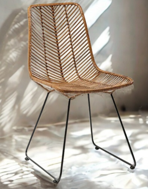 Raffinée et confortable, cette chaise combine un design moderne avec un savoir-faire artisanal. Le dossier et l’assise, entièrement tressés à la main, créent un motif en chevron unique qui apporte une texture chaleureuse.