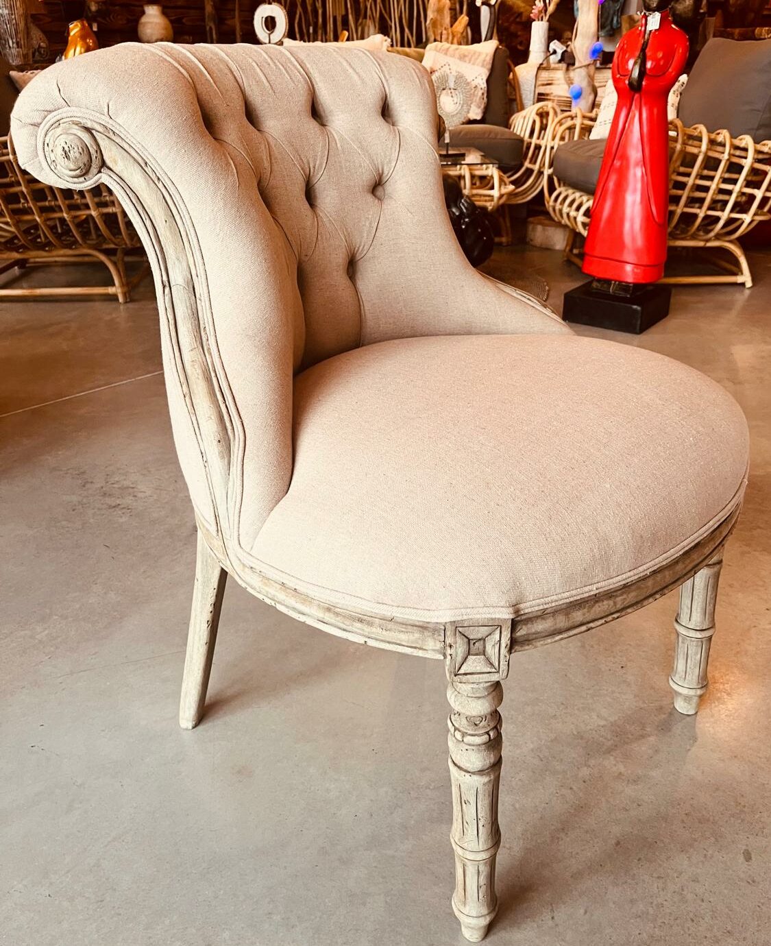 Apportez une élégance classique et raffinée à votre salon avec ce fauteuil en bois de cèdre de Bali. Tout d’abord, sa structure robuste en cèdre massif présente des détails sculptés avec soin et une patine blanchie pleine de charme. En effet, chaque pièce est issue d’un travail artisanal fait main réalisé par nos artisans balinais avec une attention méticuleuse portée aux finitions.