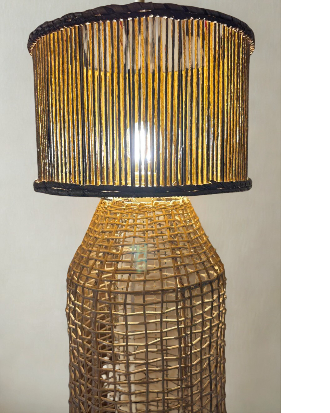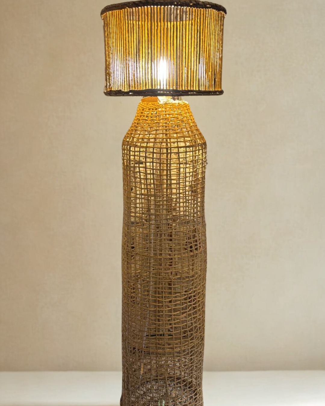 Lampadaire tressé en feuille de bananier et fibres naturelles – BOTOL NATURAL