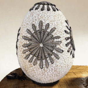 Son abat-jour, réalisé avec soin, diffuse une lumière douce et tamisée qui crée une ambiance chaleureuse et relaxante.