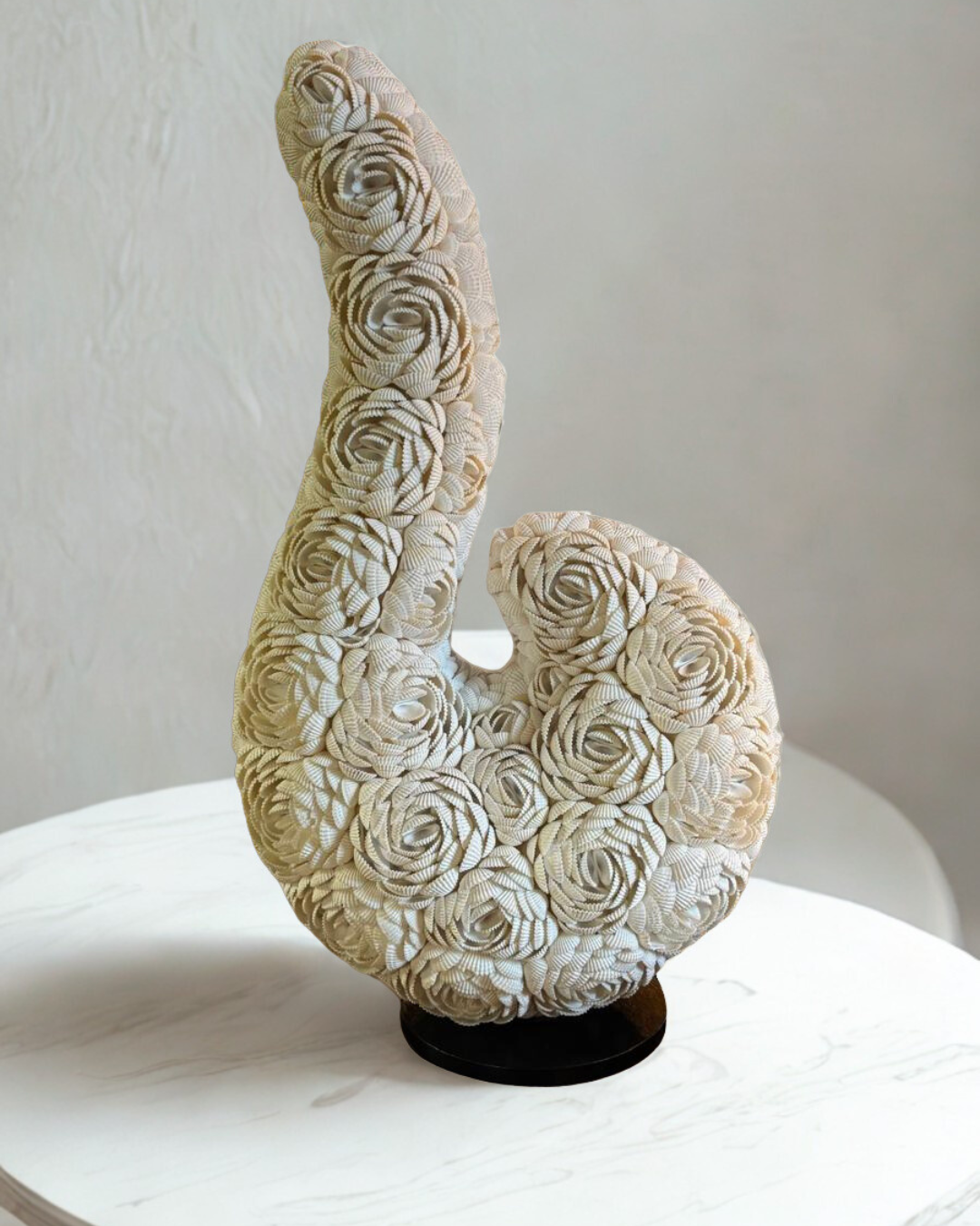 Succombez au charme de cette lampe à poser en coquillages, une pièce à la fois élégante, authentique et résolument originale. Les délicats coquillages, minutieusement arrangés, diffusent une lumière douce et chaleureuse, créant une ambiance unique et poétique qui évoque la beauté naturelle des rivages.