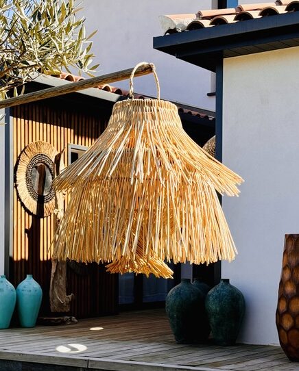 Apportez une touche d’exotisme sauvage à votre intérieur avec cette suspension en rotin naturel à franges. Effectivement, ce modèle se distingue par son allure bohème et ses fibres tombantes qui rappellent les toits traditionnels d’Indonésie. En conséquence, elle devient immédiatement la pièce maîtresse de votre décoration.