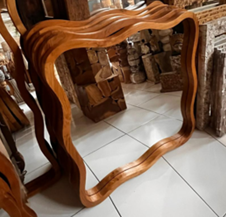 Découvrez ce miroir en bois de teck, une pièce à la fois élégante et authentique. Sa silhouette organique apporte une touche de douceur et de raffinement à votre intérieur, reflétant un style unique et naturel.