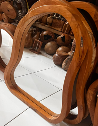 Découvrez ce miroir en bois de teck, une pièce à la fois élégante et authentique. Sa silhouette organique apporte une touche de douceur et de raffinement à votre intérieur, reflétant un style unique et naturel.