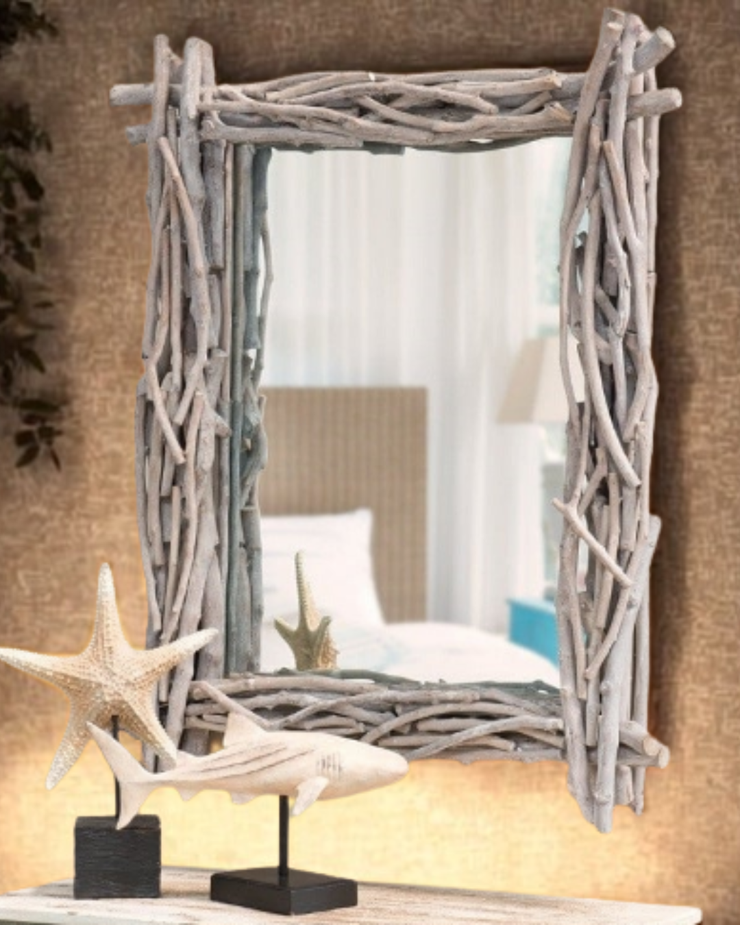 Découvrez ce miroir en branches de teck, une pièce à la fois élégante et authentique. Sa silhouette organique apporte une touche de douceur et de raffinement à votre intérieur, reflétant un style unique et naturel.