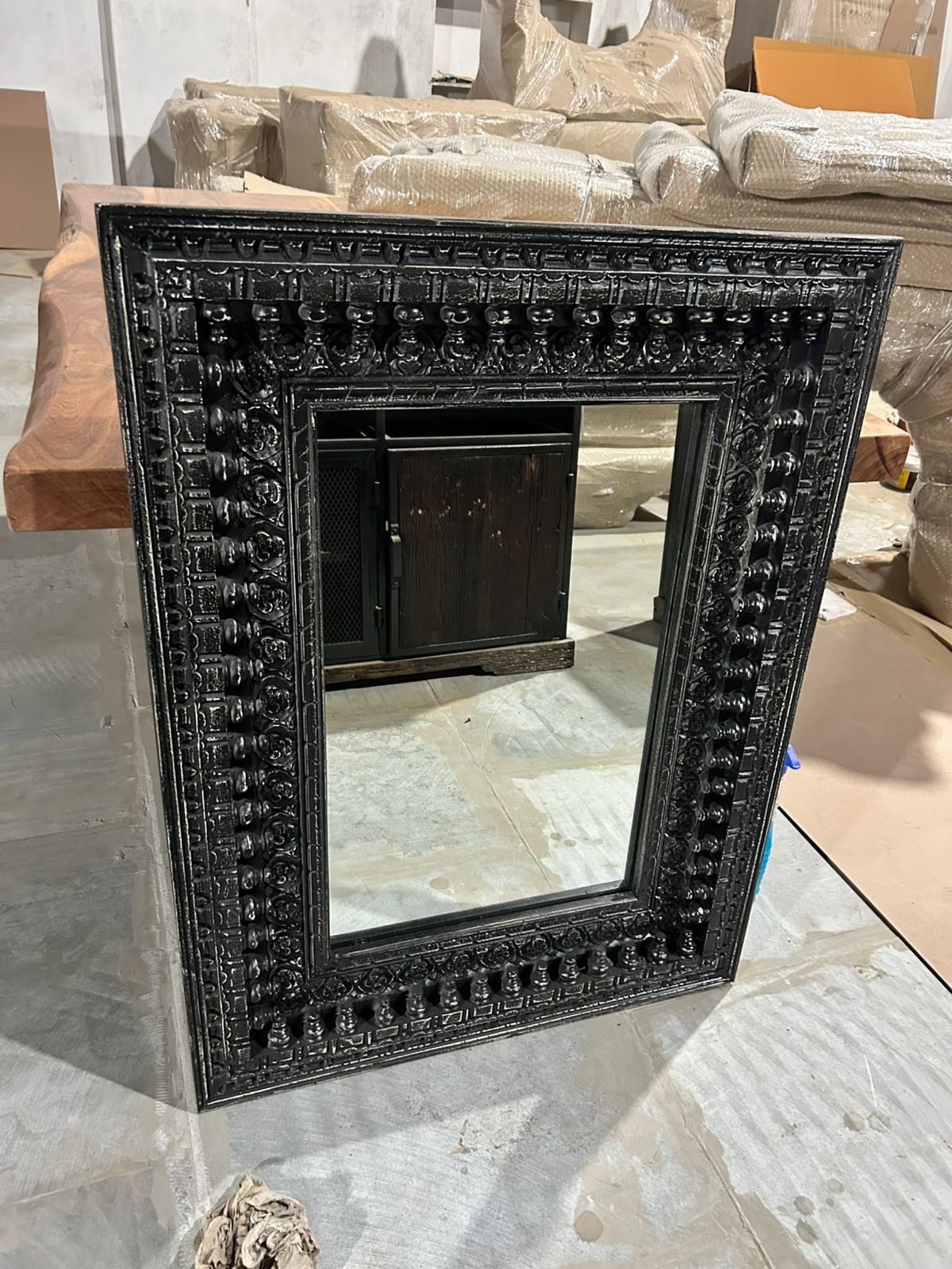 Miroir rectangulaire sculpté main en bois de manguier. Provenance Inde – AZUR