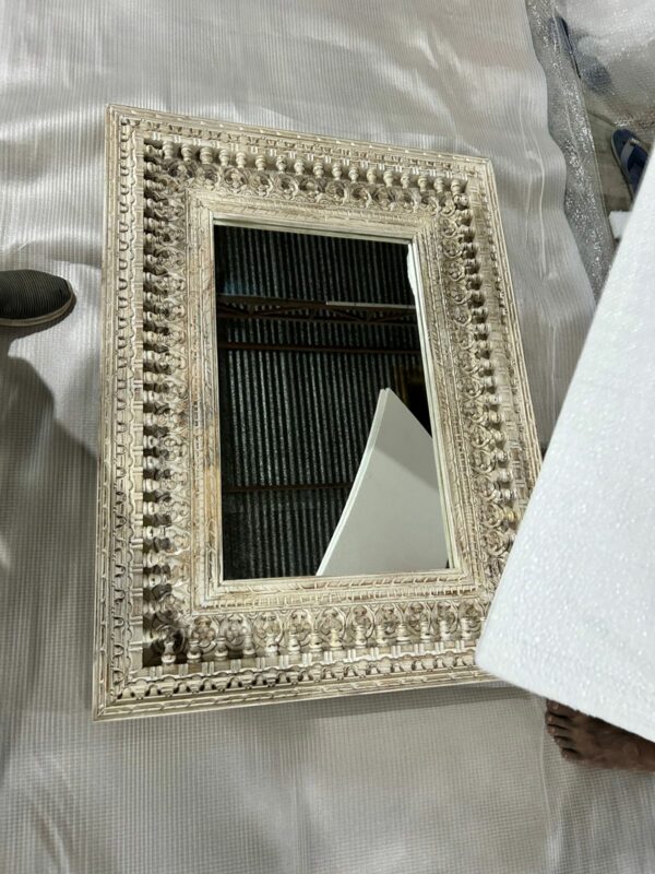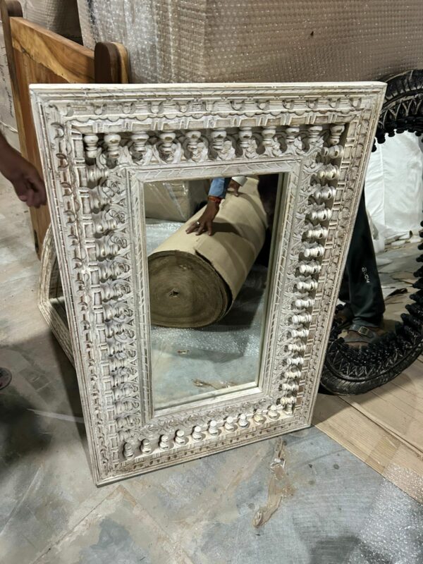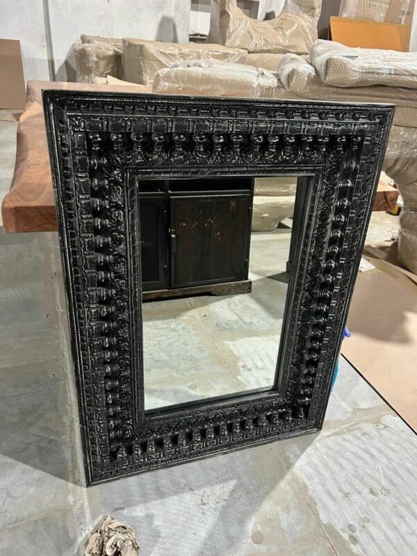 Miroir rectangulaire sculpté main en bois de manguier. Provenance Inde – AZUR