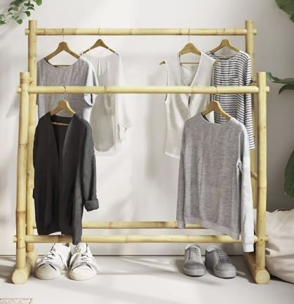 Ce porte-vêtements en bambou au design épuré est idéal pour une touche d’authenticité et de nature dans votre intérieur. Ses deux barres de suspension offrent un espace pratique pour vos vêtements, serviettes ou plaids. Léger et élégant, il s’intègre parfaitement dans une chambre ou une salle de bain.