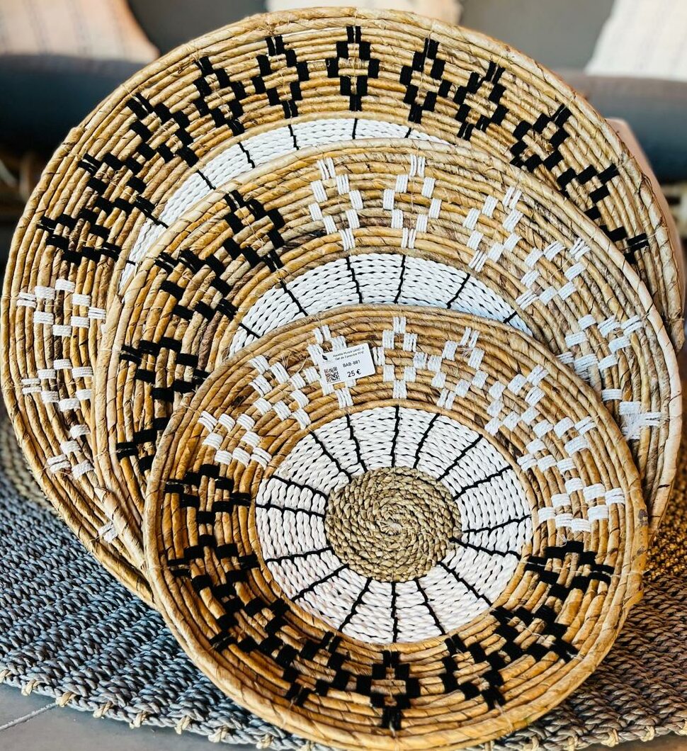 Habillez vos parois avec élégance grâce à ce set de trois assiettes murales aux diamètres variés. Ce trio se distingue par ses motifs géométriques noirs et blancs finement intégrés au tressage naturel. Chaque pièce est réalisée avec une précision remarquable, offrant un relief visuel qui dynamise instantanément votre décoration intérieure. Directement issu du savoir-faire de Bali, cet ensemble crée une atmosphère bohème chic et chaleureuse dans n’importe quelle pièce. C’est l’artisanat idéal pour ceux qui recherchent une décoration à la fois authentique et résolument moderne.