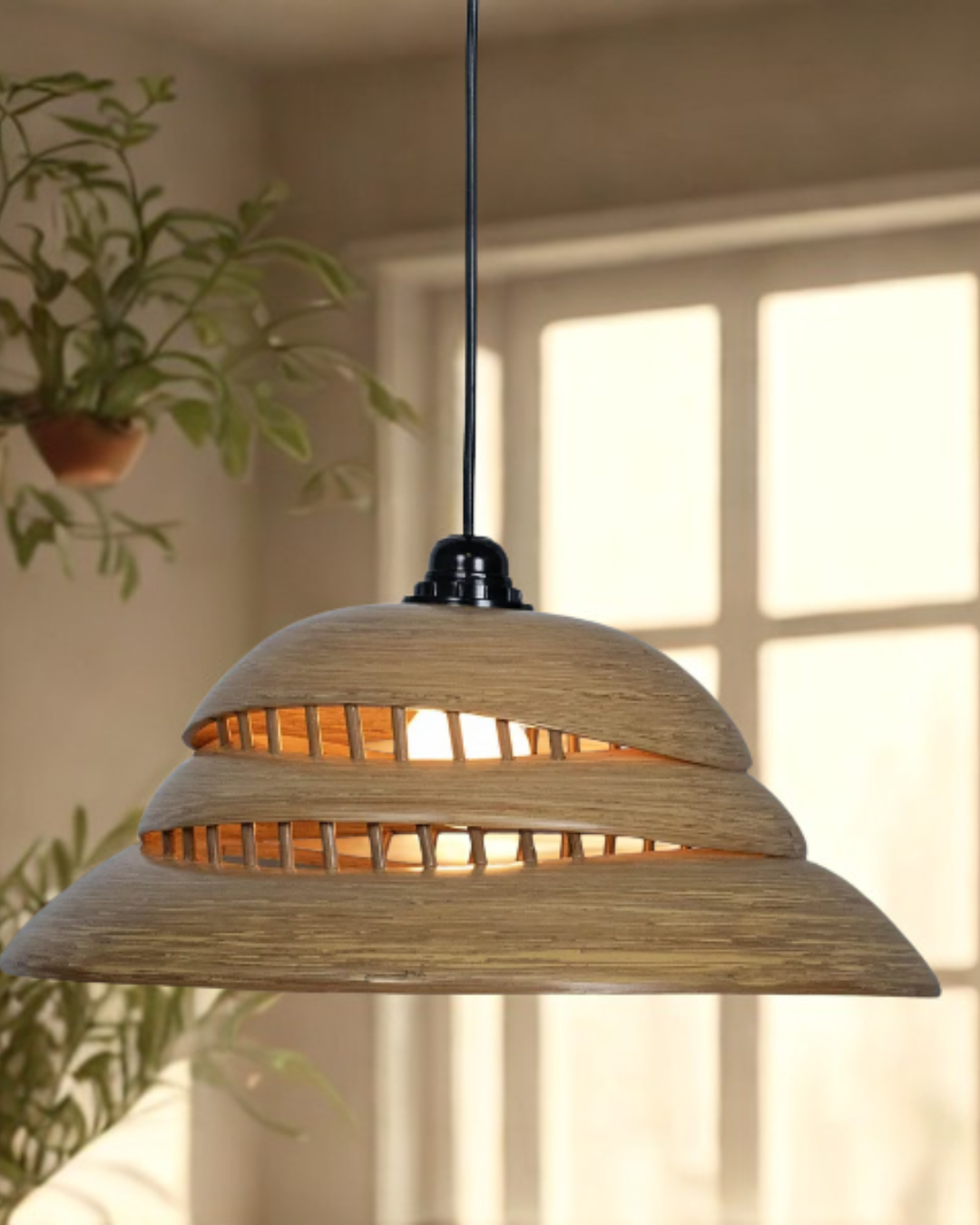 Laissez-vous envoûter par cette suspension en bambou, véritable œuvre d’artisanat. Ses courbes sublimes et magnifiques dansent avec la lumière, créant une atmosphère unique et chaleureuse. Chaque détail témoigne d’un savoir-faire artisanal exceptionnel, faisant de ce luminaire bien plus qu’un simple objet, mais une pièce maîtresse pour votre intérieur.