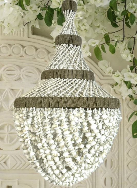 Ce lustre en coquillages, soigneusement assemblé à la main par des artisans balinais dont le savoir-faire n’est plus à prouver, est un véritable objet d’art suspendu qui transformera votre décor en un havre de paix et d’élégance.