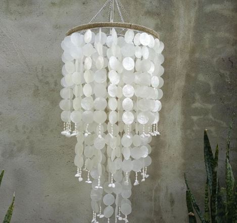 Apportez une ambiance de bord de mer à votre intérieur avec cette élégante suspension en coquillages.