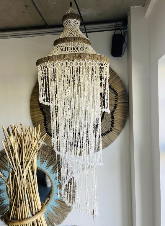 Ce lustre en coquillages, soigneusement assemblé à la main par des artisans balinais dont le savoir-faire n’est plus à prouver, est un véritable objet d’art suspendu qui transformera votre décor en un havre de paix et d’élégance.