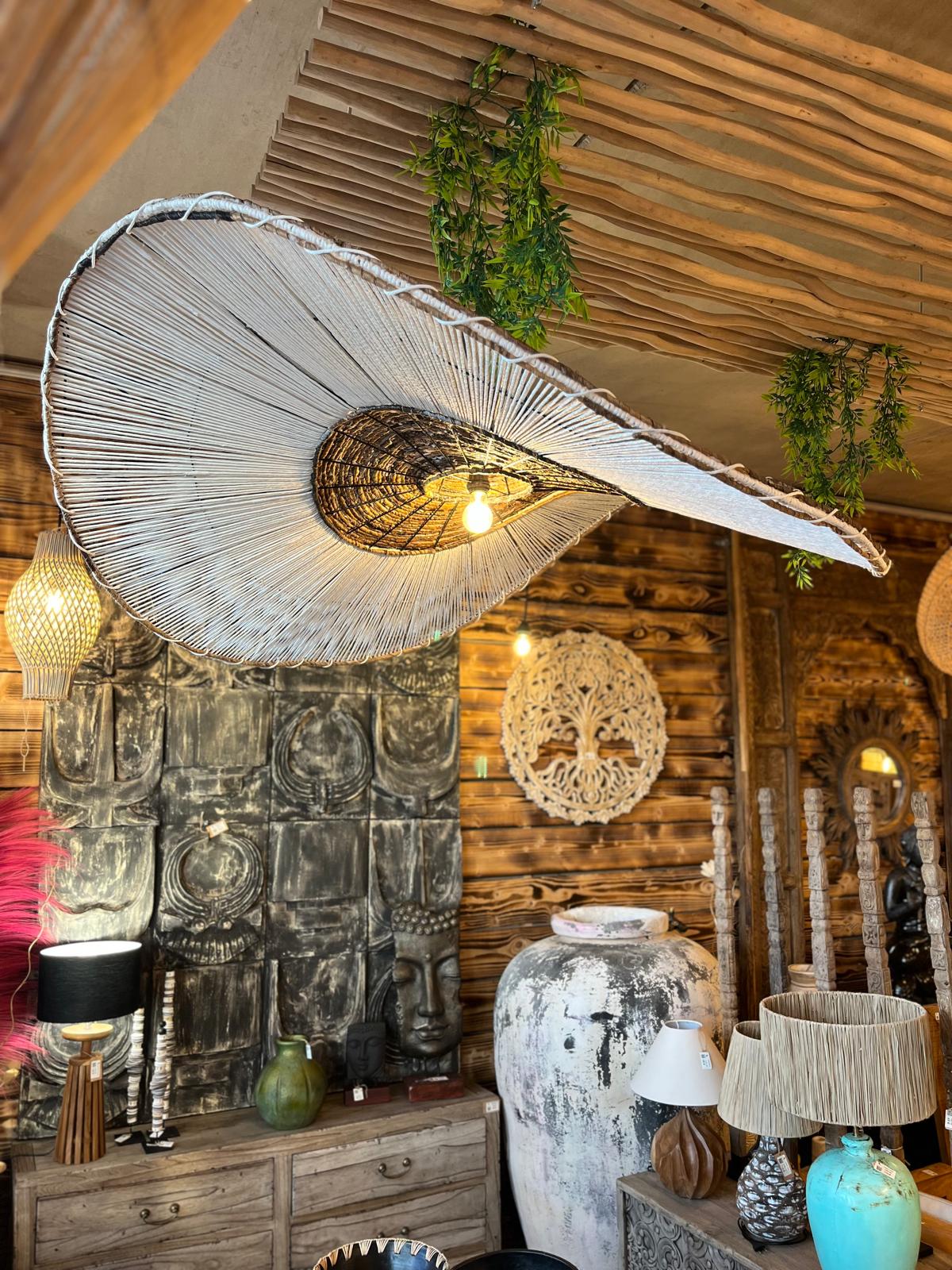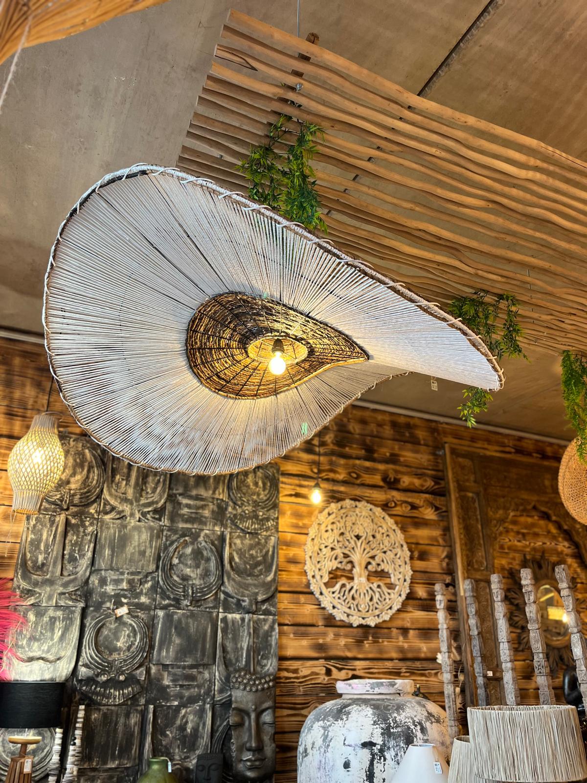 Laissez-vous charmer par cette suspension en feuille de bananier, une pièce maîtresse à la fois authentique et élégante. Sa forme aérienne et ses couleurs naturelles diffusent une lumière douce et créent une ambiance exotique et raffinée dans votre intérieur.