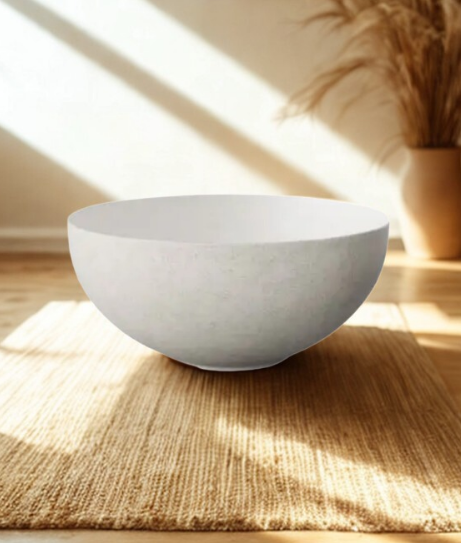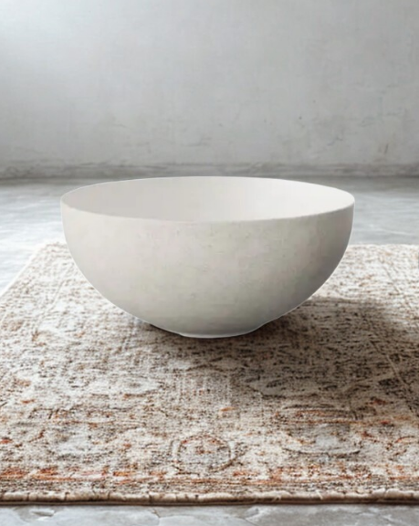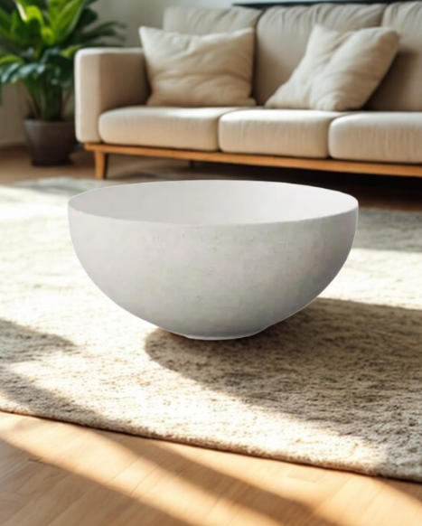 Cette table basse est fabriquée selon un savoir-faire balinais traditionnel. Le fibrociment permet d’obtenir une texture minérale douce, très appréciée dans les ambiances bohèmes, wabi-sabi ou contemporaines.