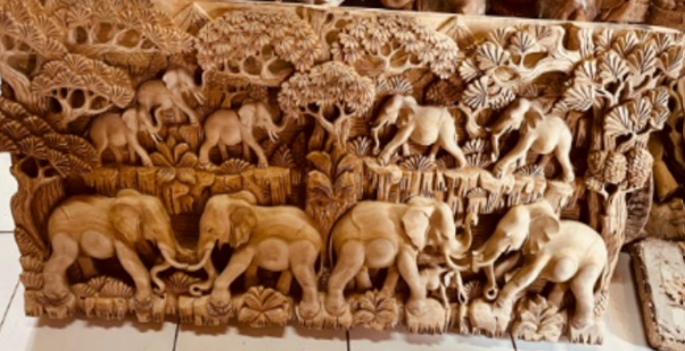 Ce bas-relief en bois représentant la forêt tropicale des éléphants est une œuvre d’art unique en son genre. Si vous rêvez d’une œuvre d’art unique, séduisante et magnifique, cette pièce est faite pour vous. Incroyablement ornée, elle sera aussi belle accrochée au mur que posée sur une étagère.