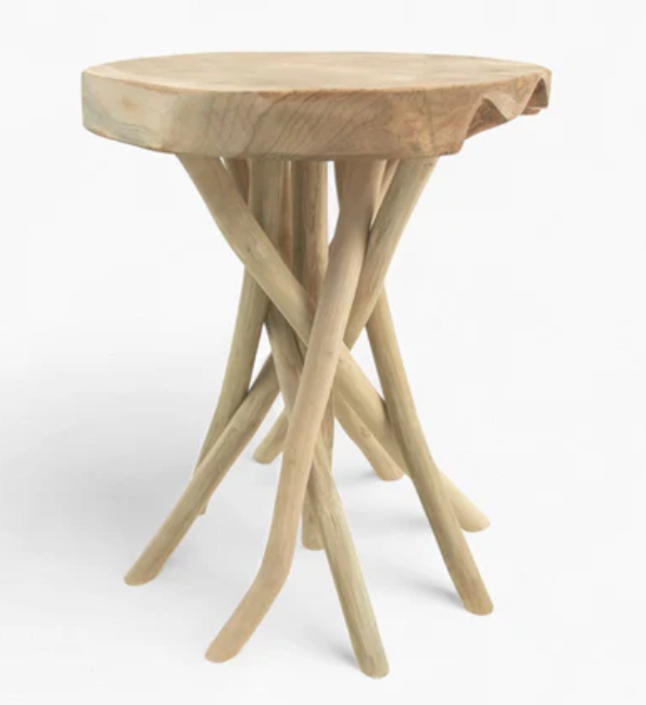 Tabouret d’appoint, pieds en branches de teck et assise en teck massif – PIETA